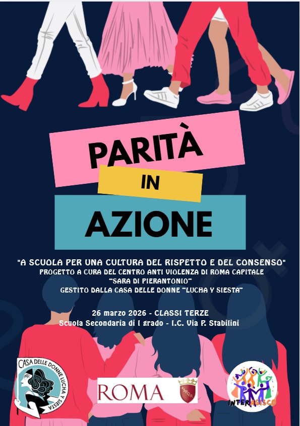 Il giorno giovedì 26 marzo le operatrici del Centro Anti Violenza di Roma Capitale “Sara di Pierantonio” e della Casa delle Donne “Lucha y Siesta” incontreranno le studentesse e gli studenti delle classi terze della Scuola Secondaria di I grado per parlare di parità di genere, rispetto e consenso. L’incontro, strutturato secondo una modalità laboratoriale e interattiva, si svolgerà nel Teatro Scolastico in via L. Leonardi, 180.
